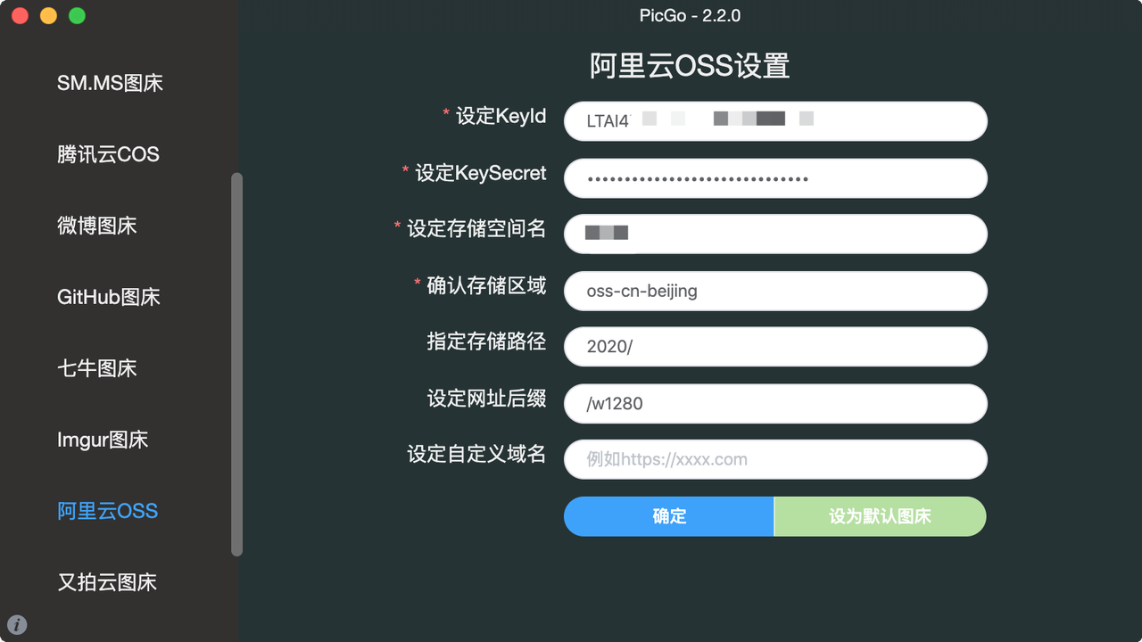 代表将图片等比缩放到宽度<=1280自定义域名:图片成功上传后,PicGo会将