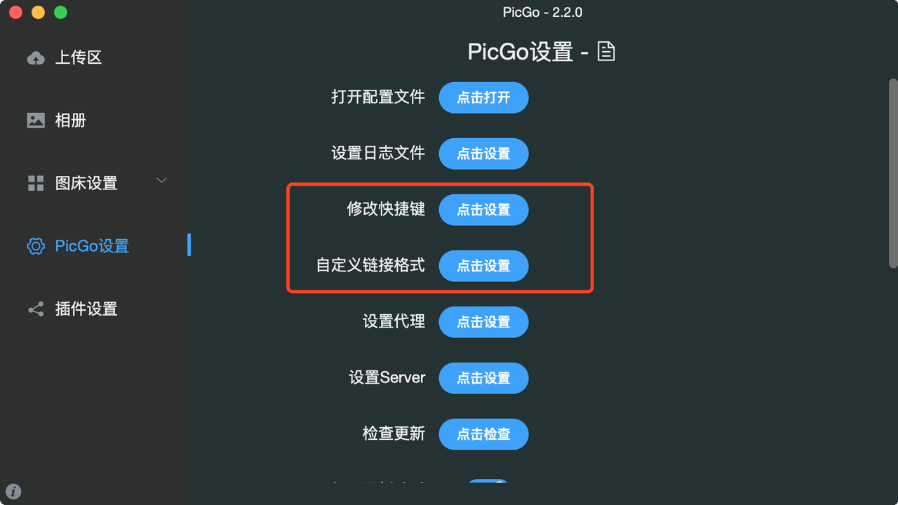 (Windows\Linux)用以支持快捷上传剪贴板里的图片(第一张)。 PicGo 支持自定义快捷键,使用方法见 配置手册。
